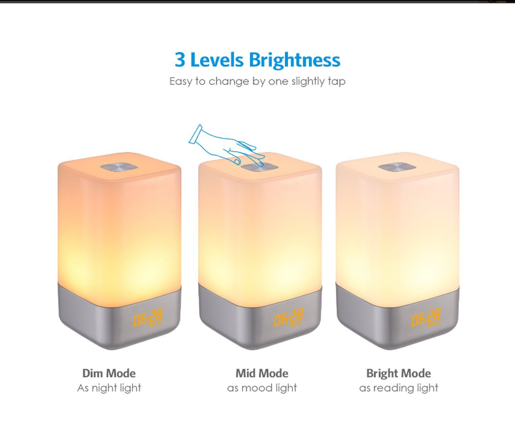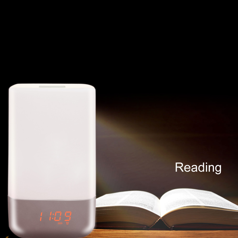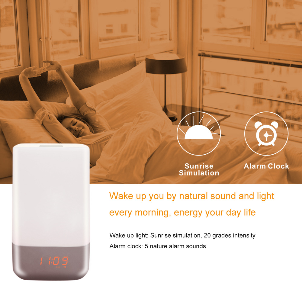 New multifunctional electronic alarm clock, LED bedside night light in stock, seven color natural wake-up light, wholesale by manufacturers