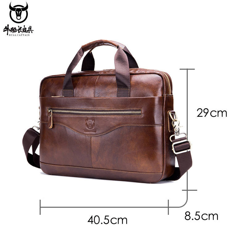 Captain Niu Leather Laptop Briefcase Men's Leather One Shoulder Crossbody Bag Cow Leather Business Official Affairs Bag