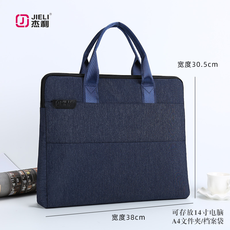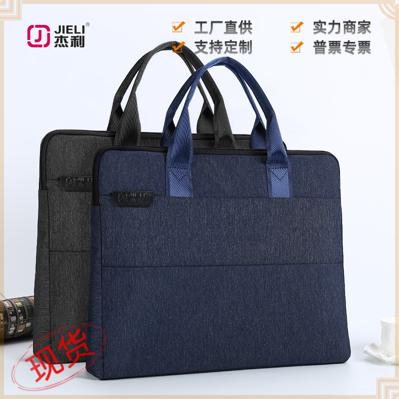 杰利办公文件包手提袋帆布会议包A4拉链文件袋防水公文包定制印刷