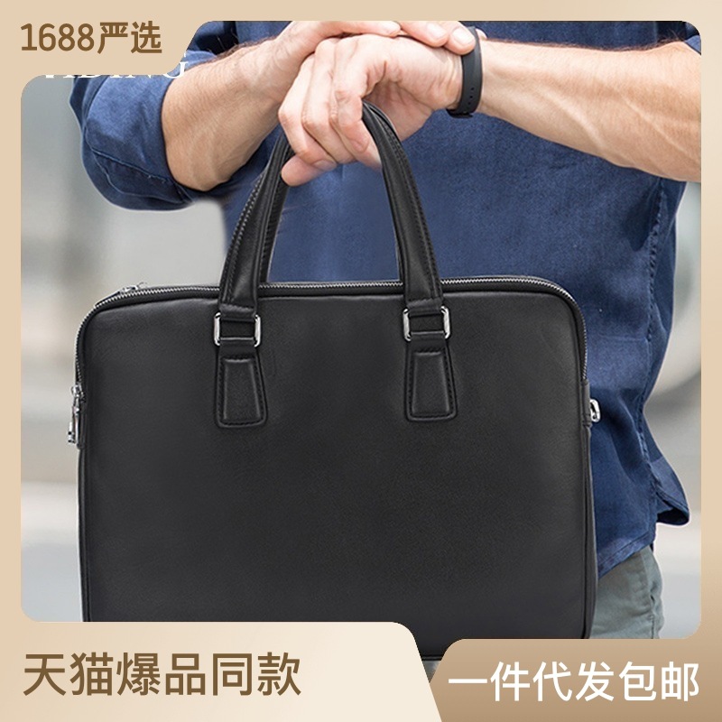 跨境商务头层牛皮男士公文包真皮公务男包可单肩斜挎手提包电脑包