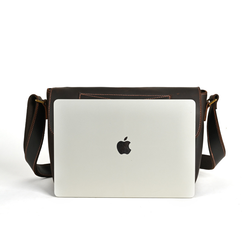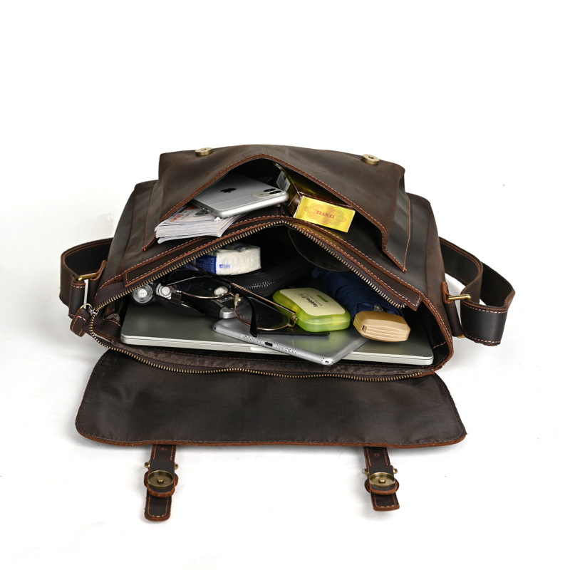 疯马皮复古男士单肩斜跨公文包真皮翻盖多功能大容量邮差包