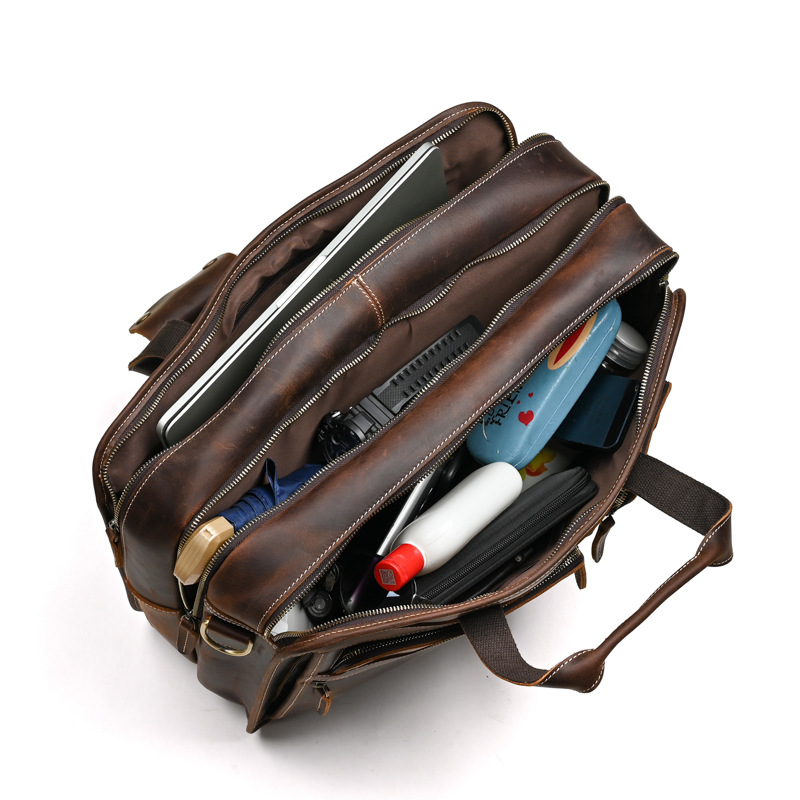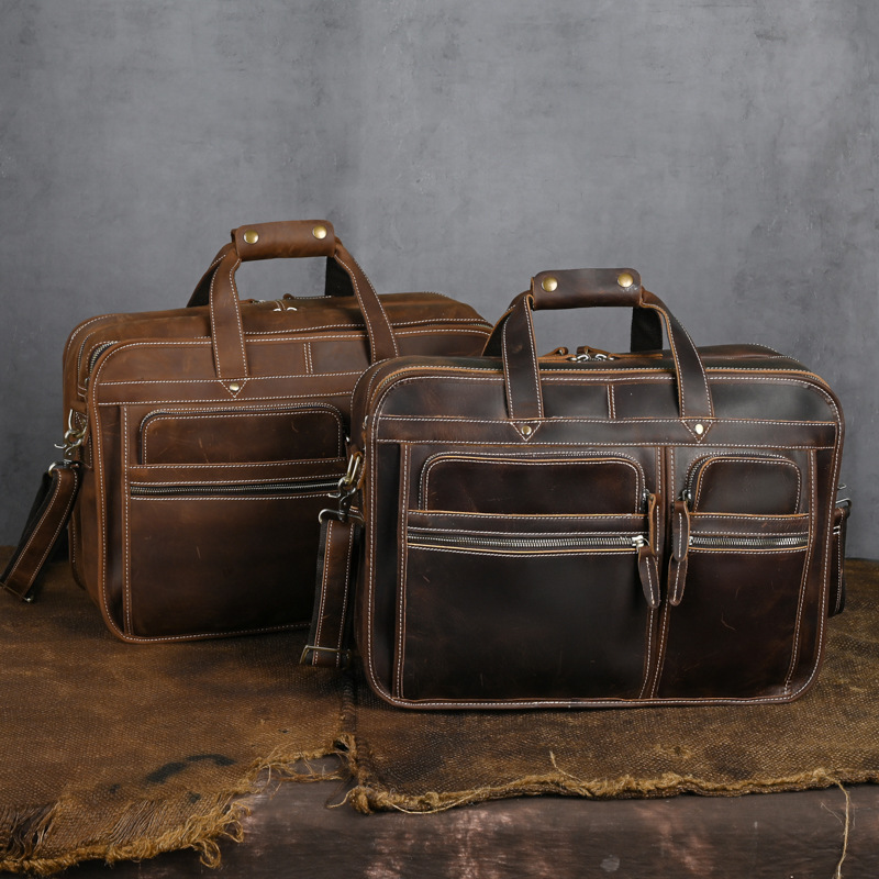 疯马皮欧美复古男士大容量手提包真皮商务公文包通勤电脑包男