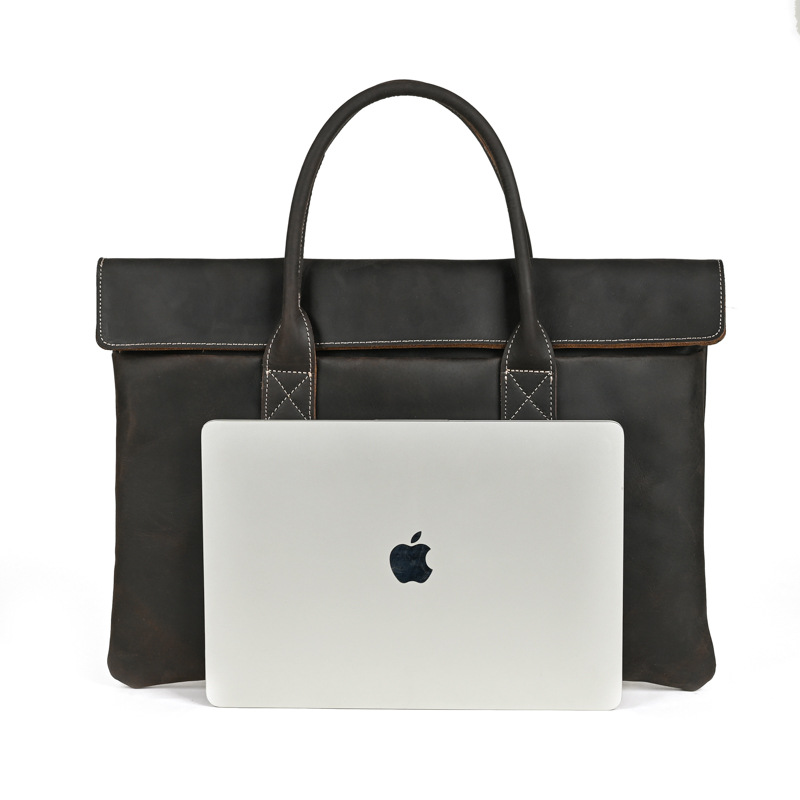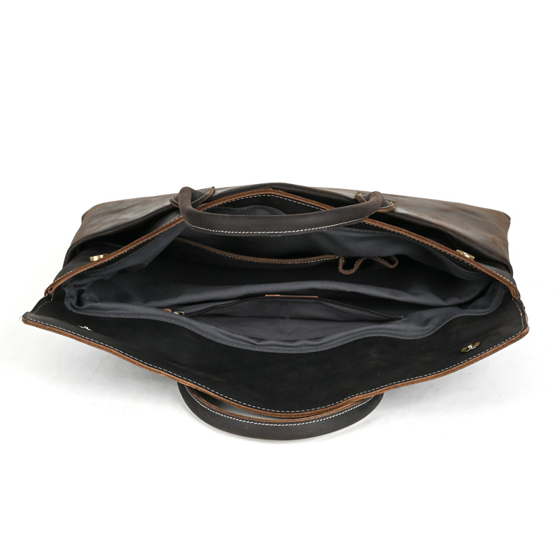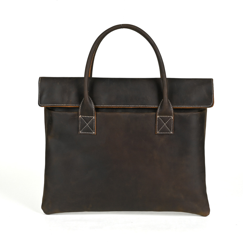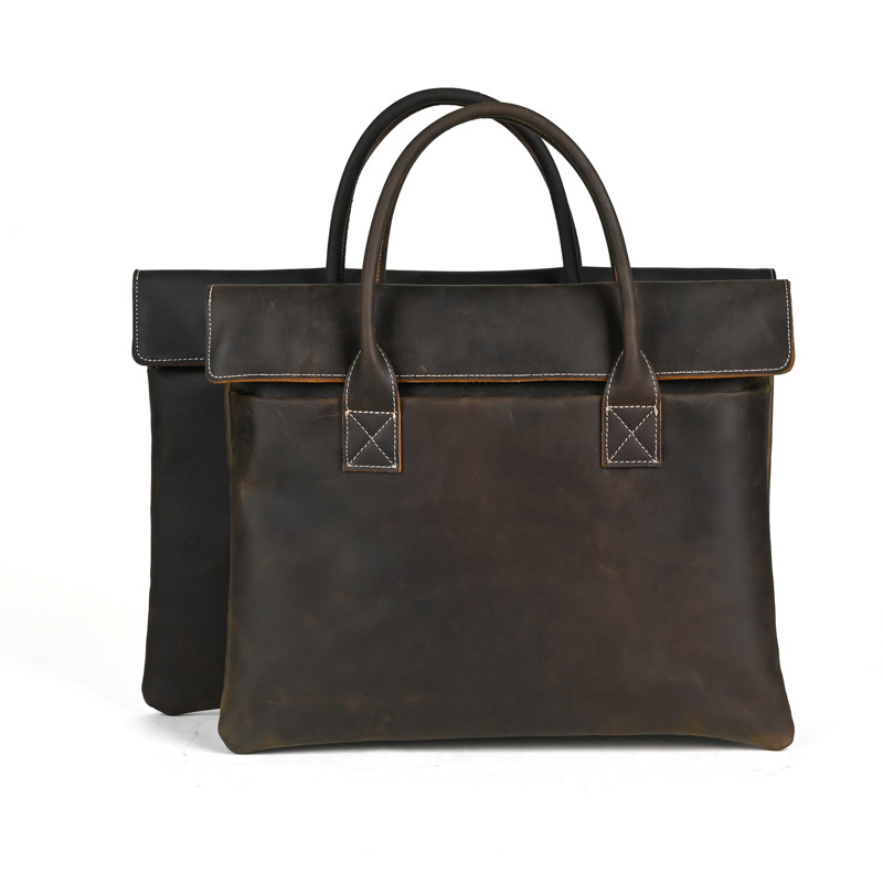 Crazy horse leather portable briefcase Cow leather men's retro leather business high-capacity computer bag