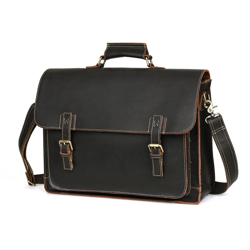 真皮男士公文包疯马皮复古男士商务包多功能电脑手提包
