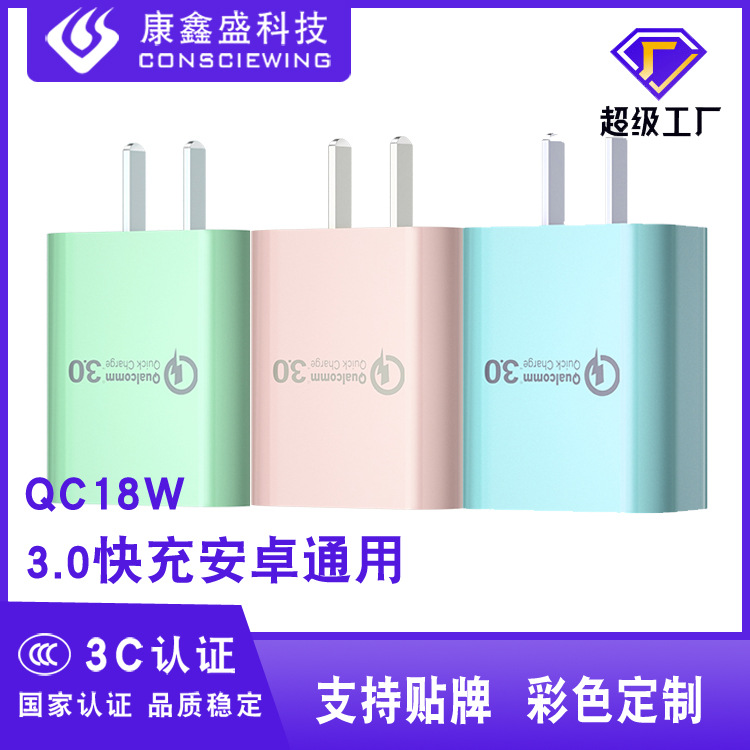 Customized color QC3.0 charger 18W fast charging 3C certification suitable for Huawei Xiaomi Android phone charging head