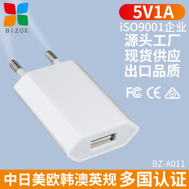 Wholesale of 5V1A mobile phone charger single port USB European standard charging head CE certified Andromega standard power adapter