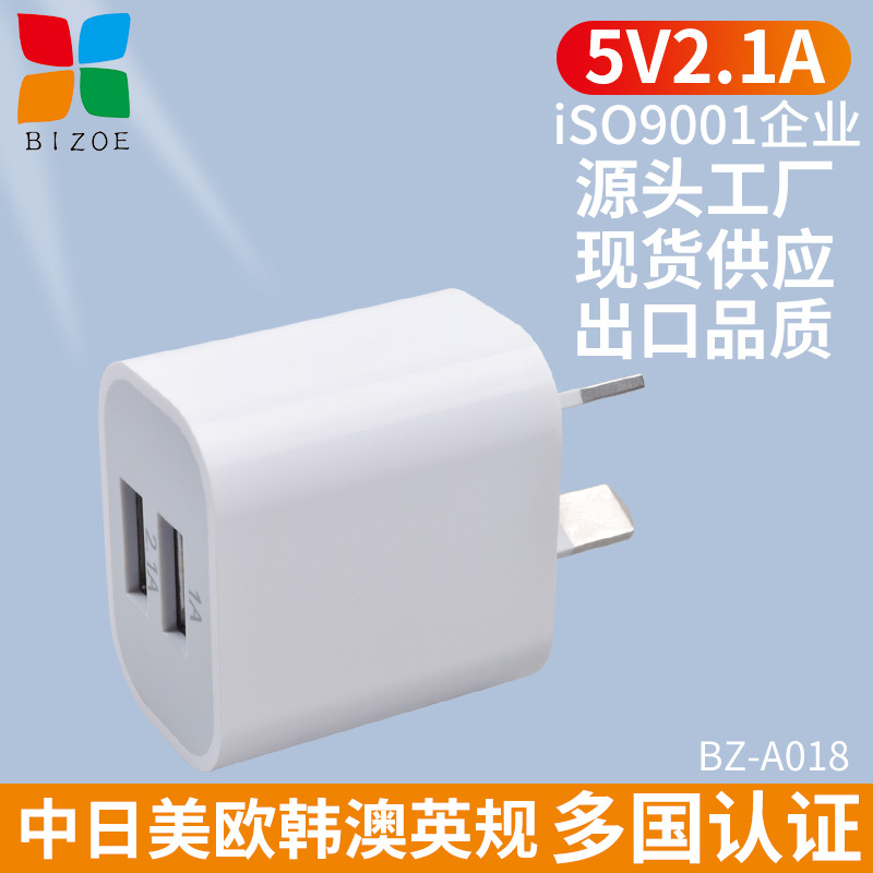 5V2A手机充电器双口USB澳规充电头通用英美规安卓电源适配器批发