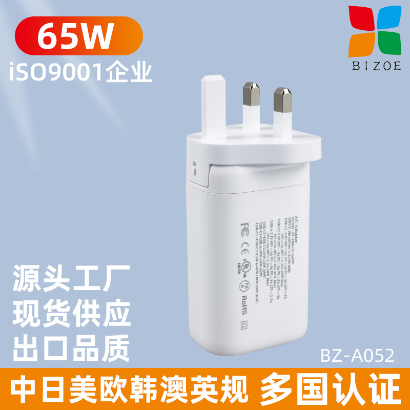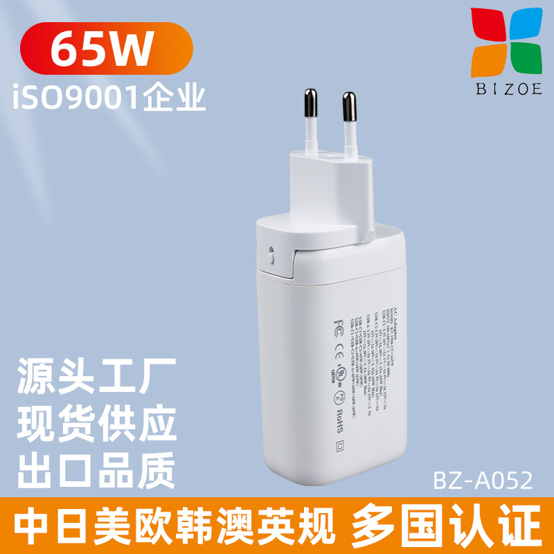 跨境笔记本电脑手机通用充电器多口PD65W充电头快充氮化镓批发