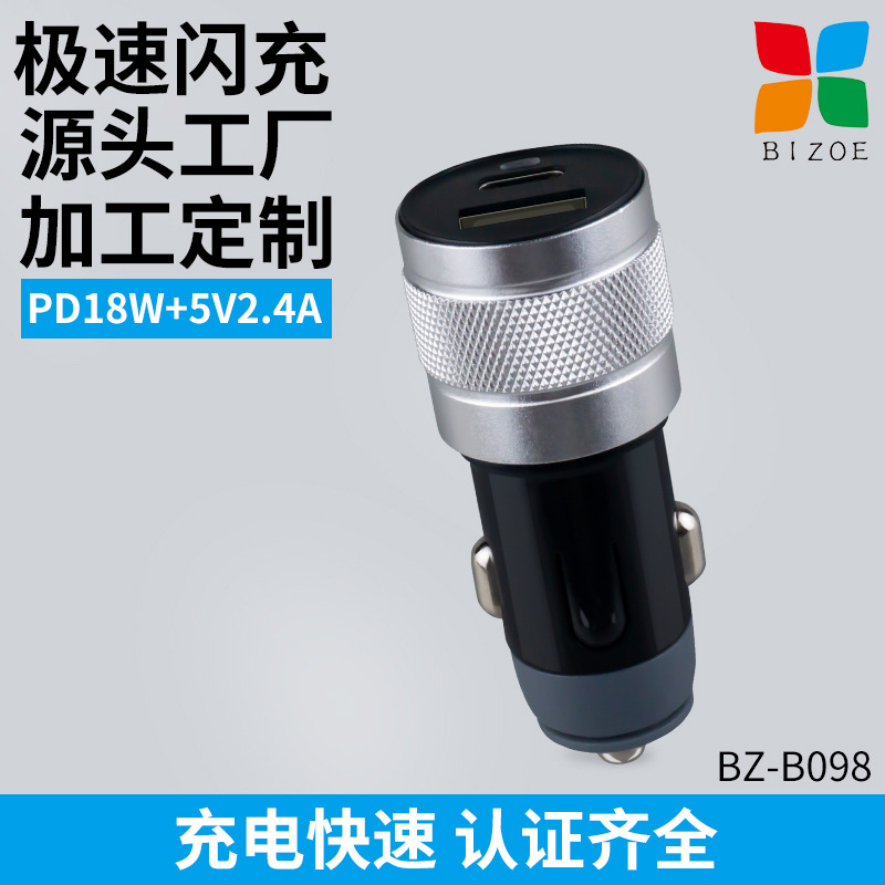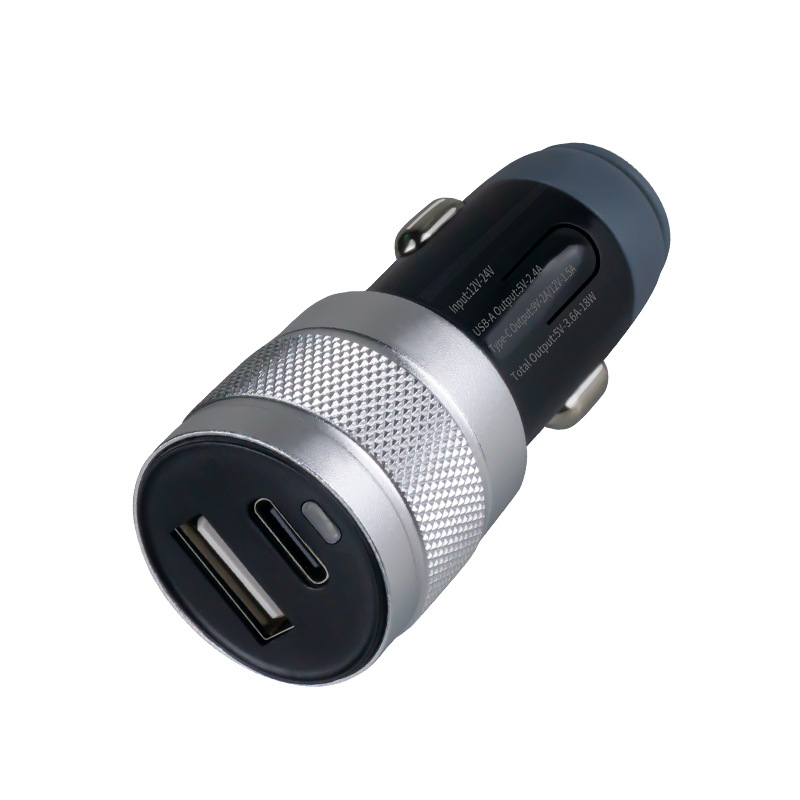 Cross border exclusive PD18W+5V2.4A aluminum ring indicator light USB car charger dual port multifunctional car charger