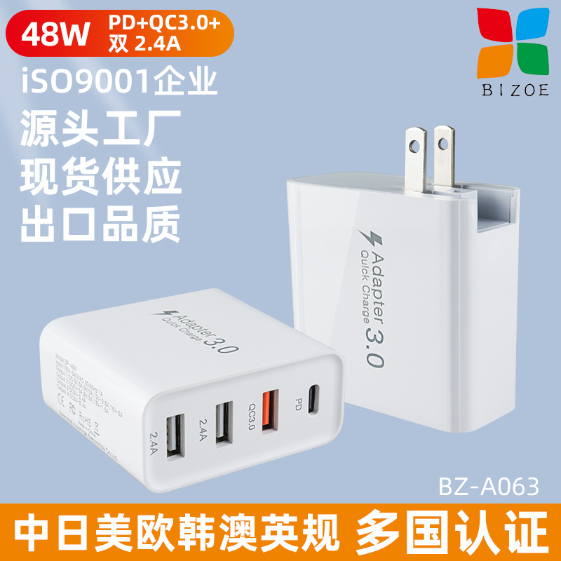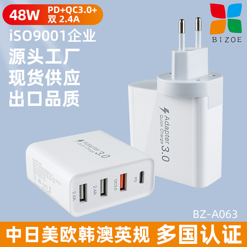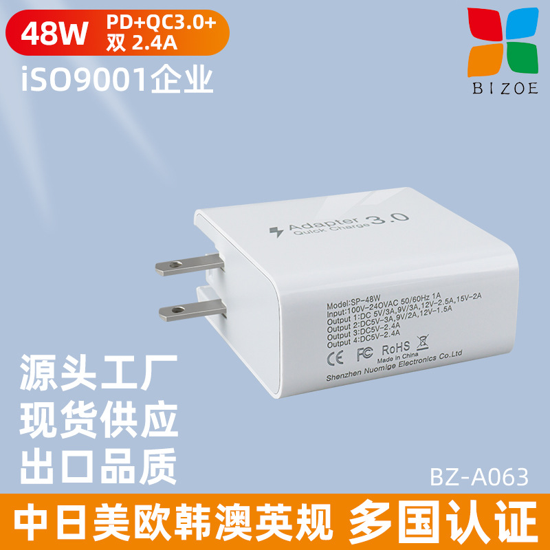 跨境48WPD充电器QC3.0四口旅充适用于苹果华为小米手机平板适配器