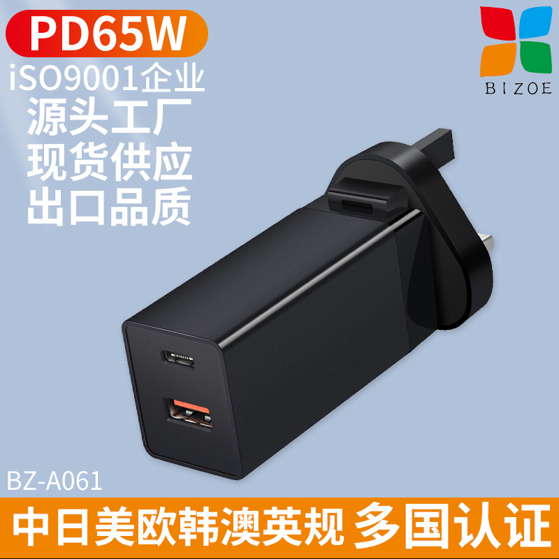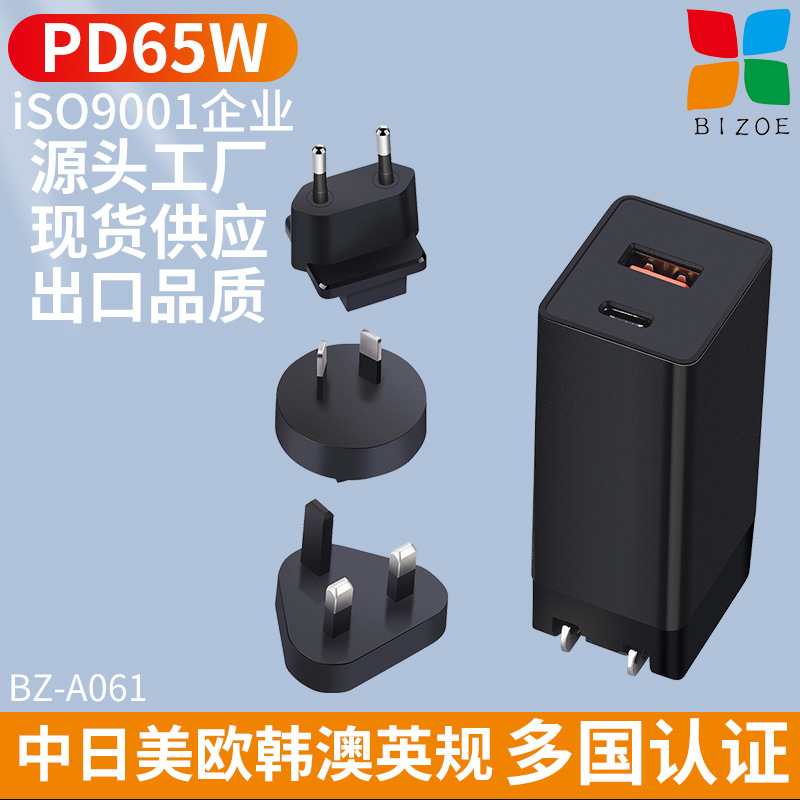 Cross border dual port PD65W charger GaN foldable pin interchangeable plug mobile phone charging head USB fast charging gallium nitride