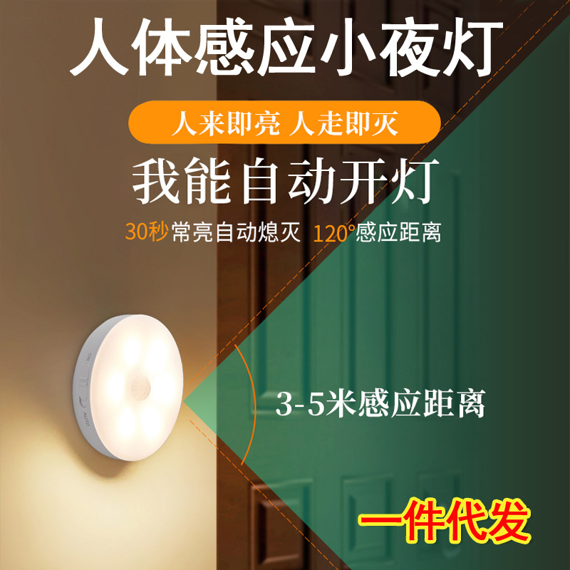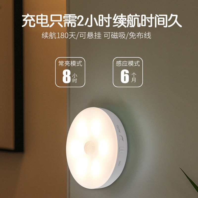 人体感应小夜灯USB充电壁灯走廊灯起夜灯LED床头灯节能跨境爆款