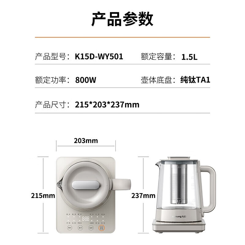 九阳养生壶多烧水壶1.5L电热水壶纯钛发热盘 K15D-WY501 灰色| 包装清单 | 九阳养生壶多烧水壶1.5L电热水壶纯钛发热盘 K15D-WY501 灰色 |