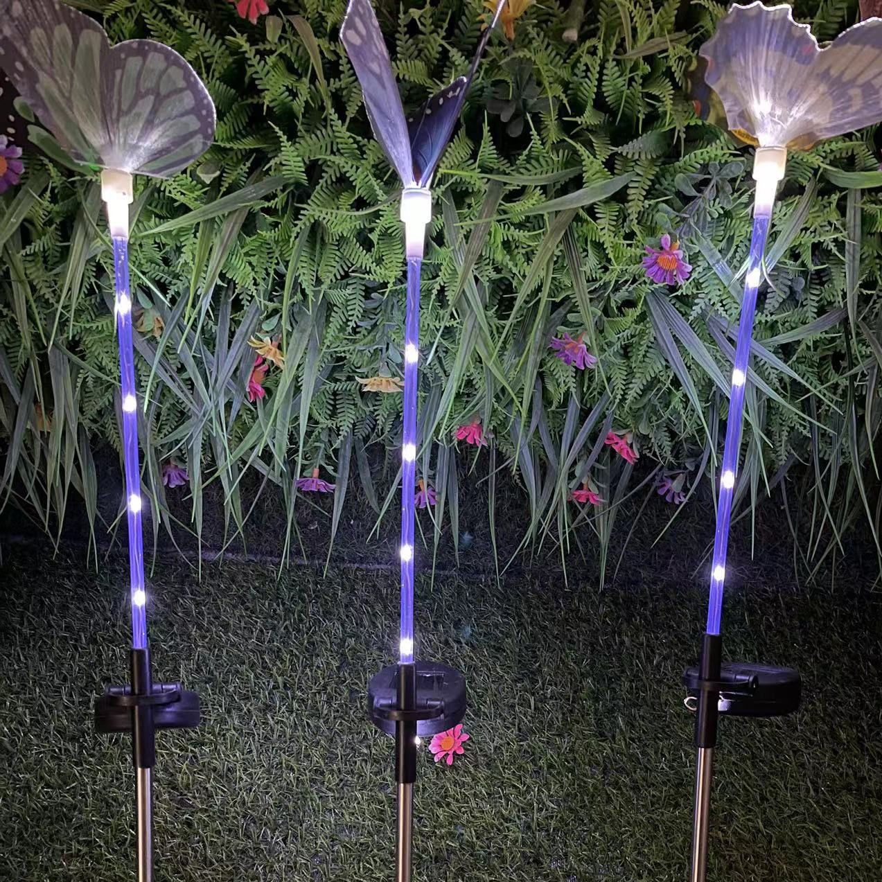 爆款跨境LED太阳能光纤蝴蝶灯 户外庭院花园阳台景观灯