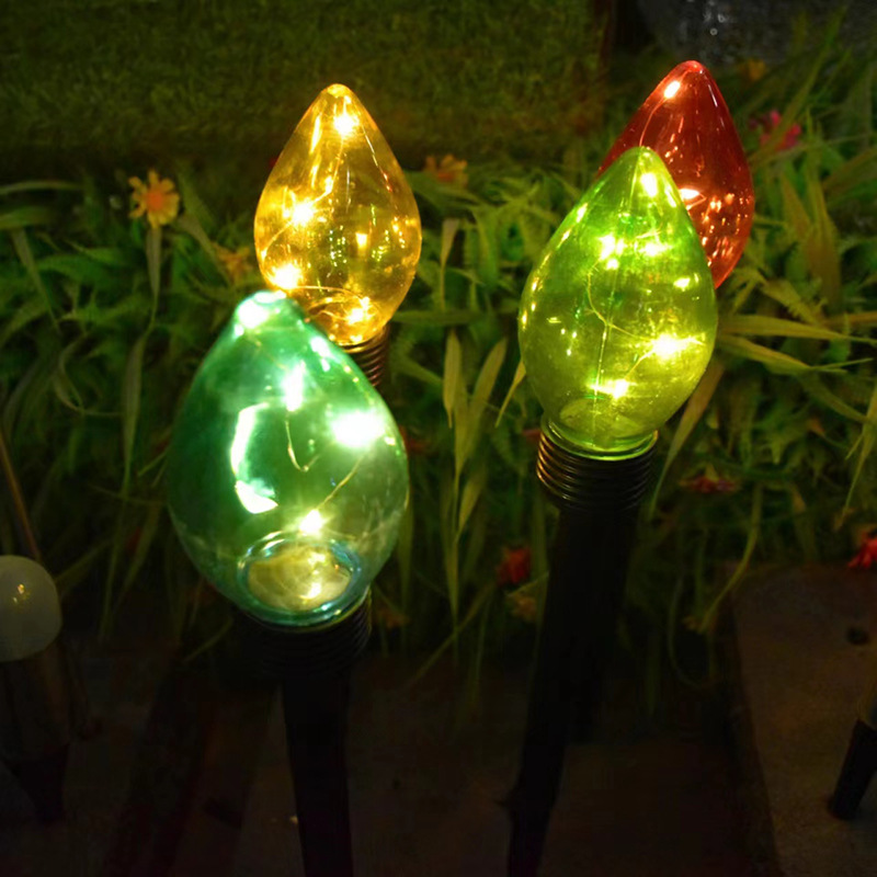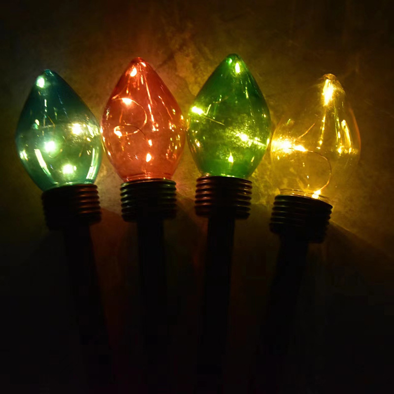 草坪灯一拖四圣诞灯 糖果色造型塑料草坪灯庭院花园道路LED太阳能