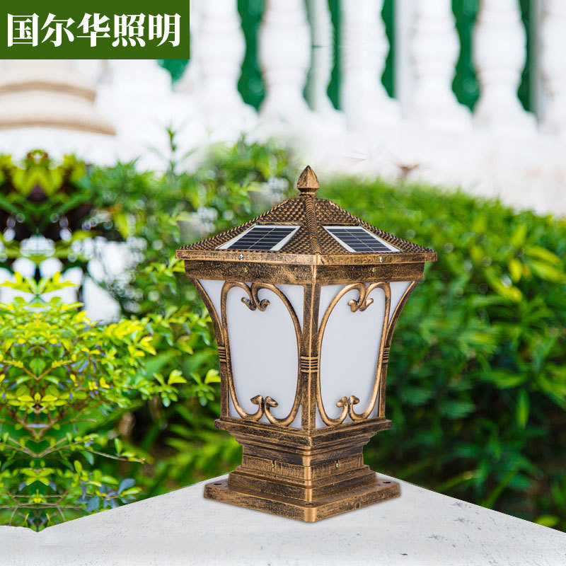 一件代发压铸铝太阳能柱头灯复古户外围墙灯别墅庭院灯工程墙头灯