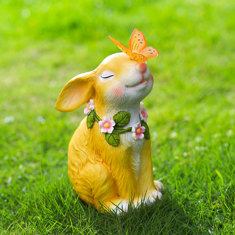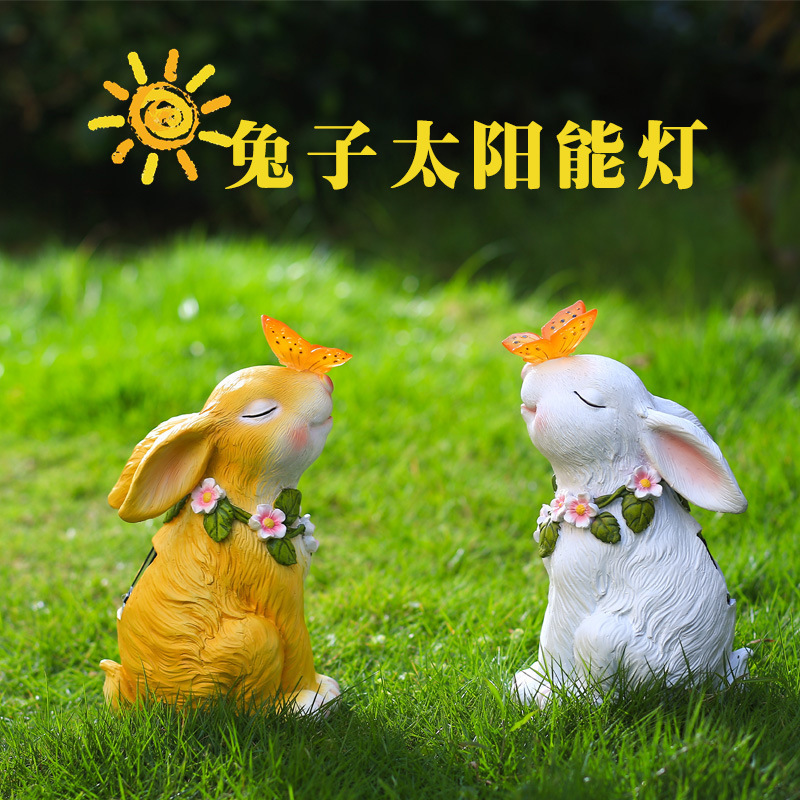 跨境新款太阳能庭院灯花园草坪装饰兔子创意摆件卡通动物小夜灯