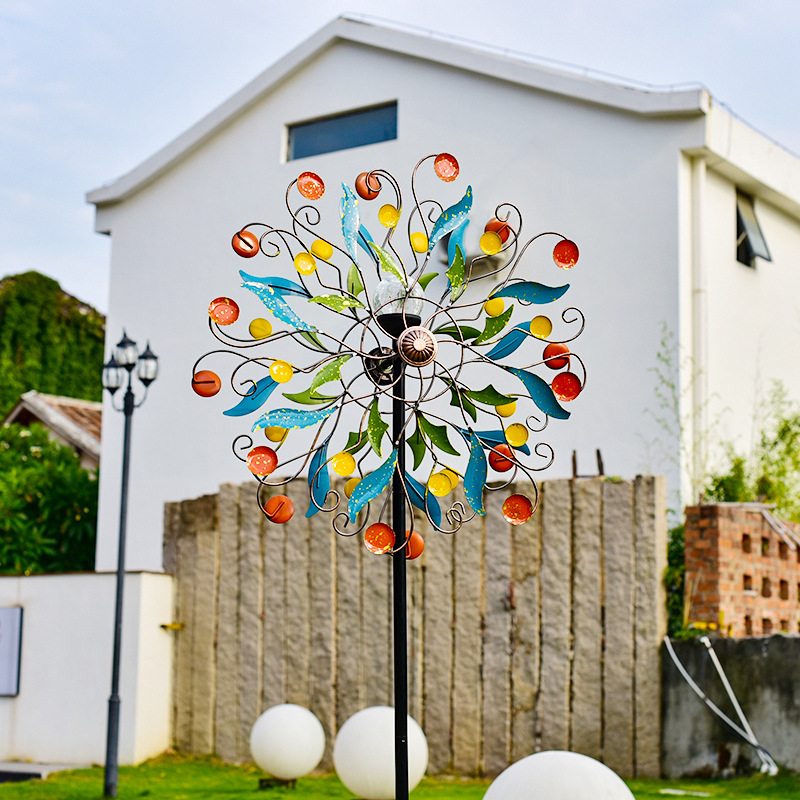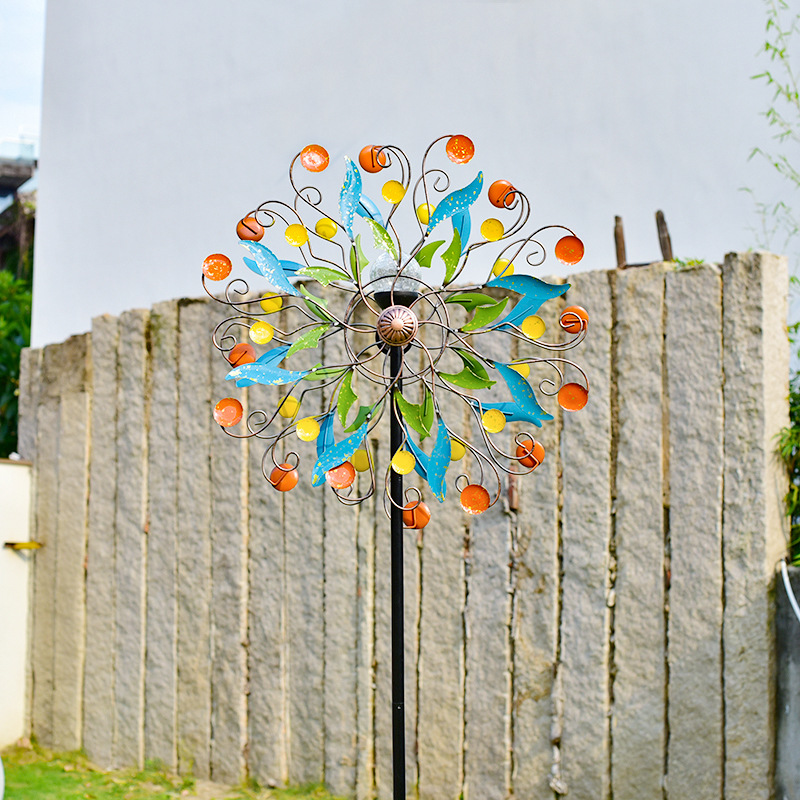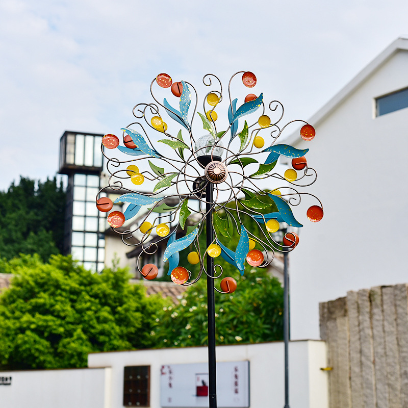 跨境新款铁艺双面旋转柳叶风车户外园林庭院景观装饰创意太阳能灯