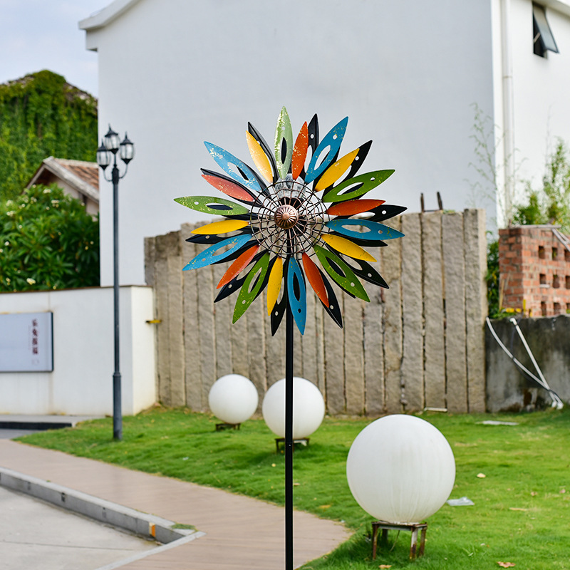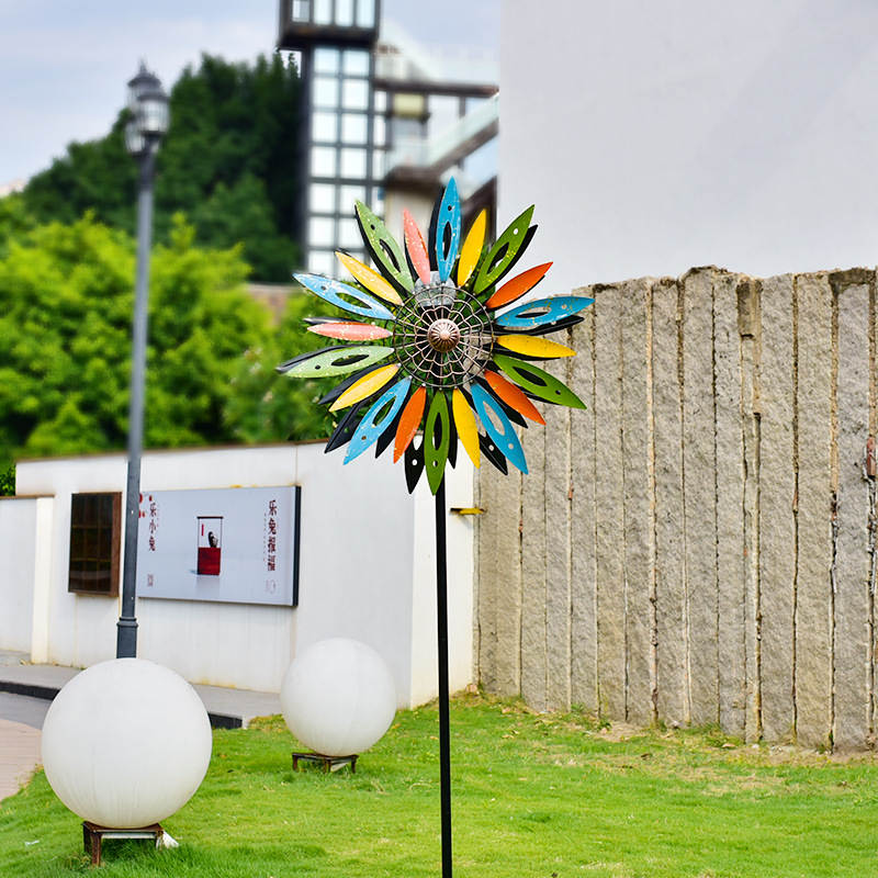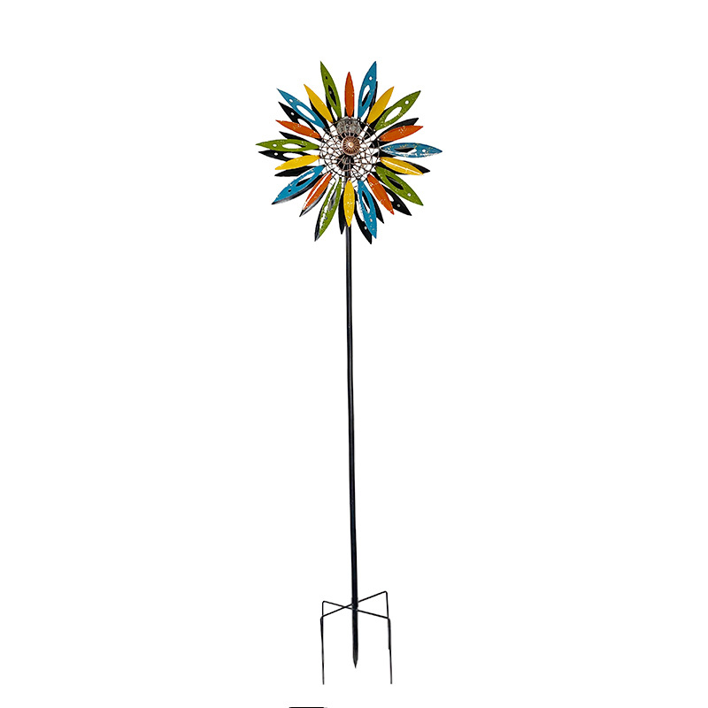 现货批发太阳能铁艺双面彩色旋转风车户外花园别墅园林景观装饰
