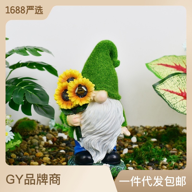 跨境创意太阳能装饰灯侏儒树脂工艺品户外花园阳台小矮人工艺摆件