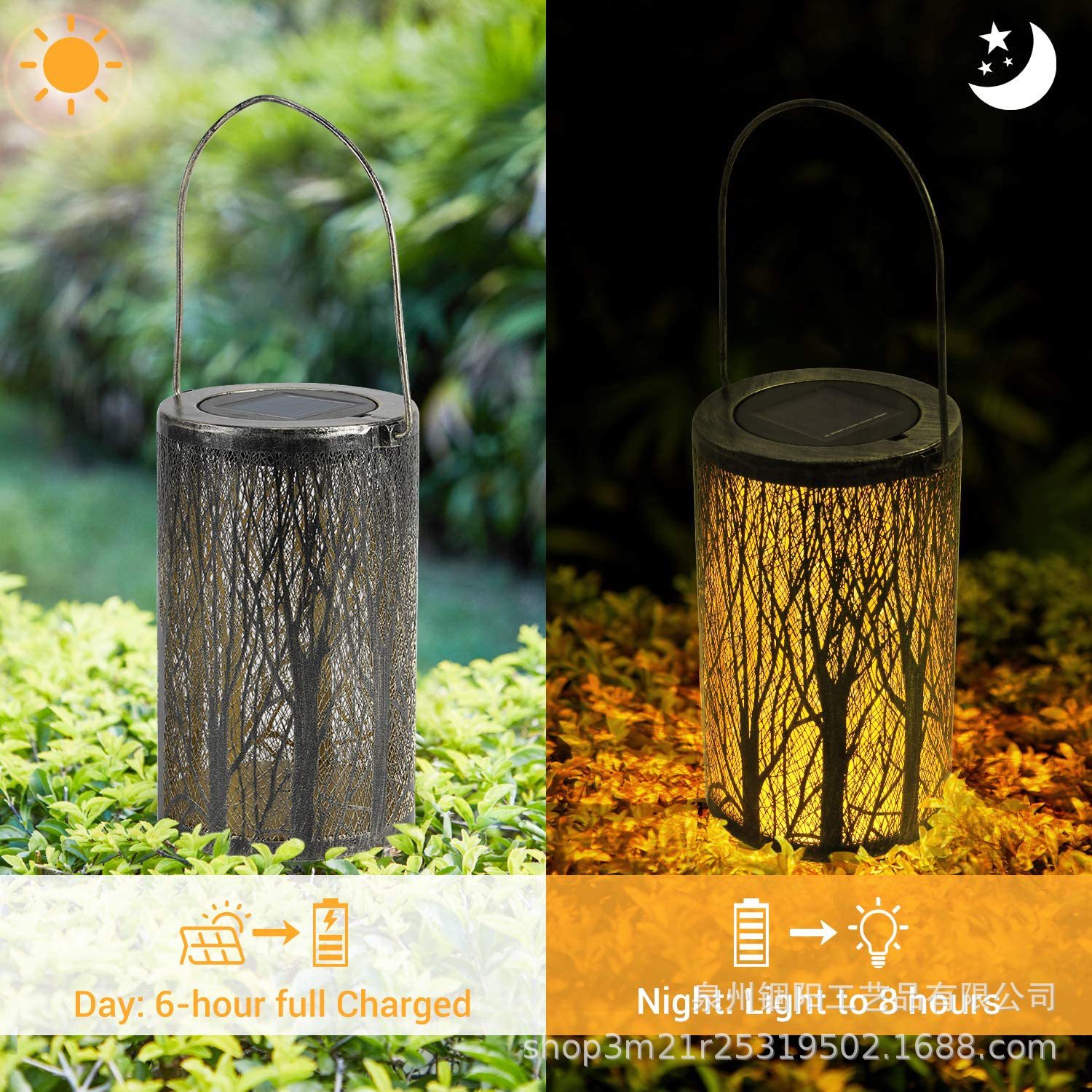 包装清单 跨境创意户外太阳能灯铁艺镂空大树投影灯庭院景观装饰灯悬挂灯笼