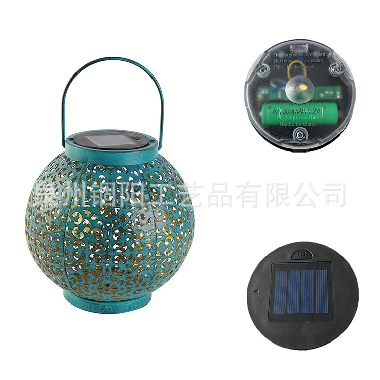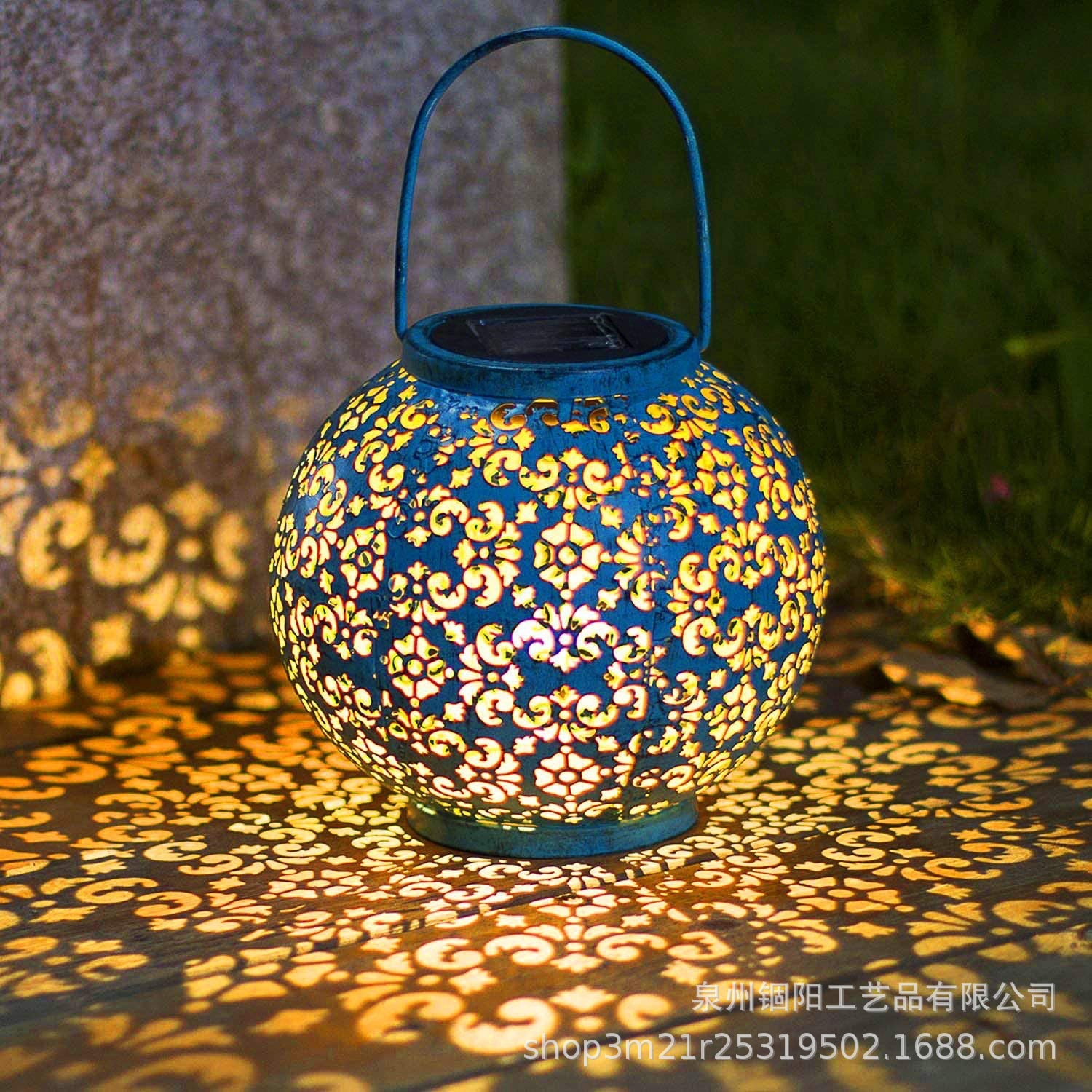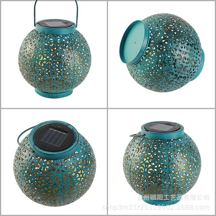 亚马逊太阳能铁艺镂空投影灯户外花园庭院景观装饰灯蓝色金属灯笼