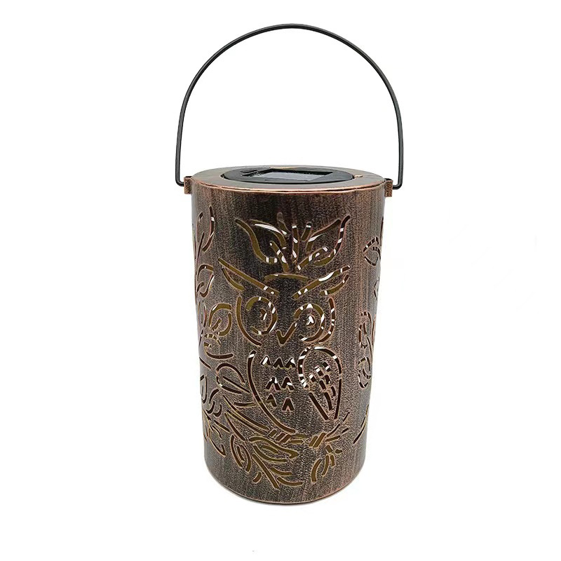 包装清单 跨境太阳能灯笼创意猫头鹰铁艺镂空投影灯户外花园庭院装饰景观灯