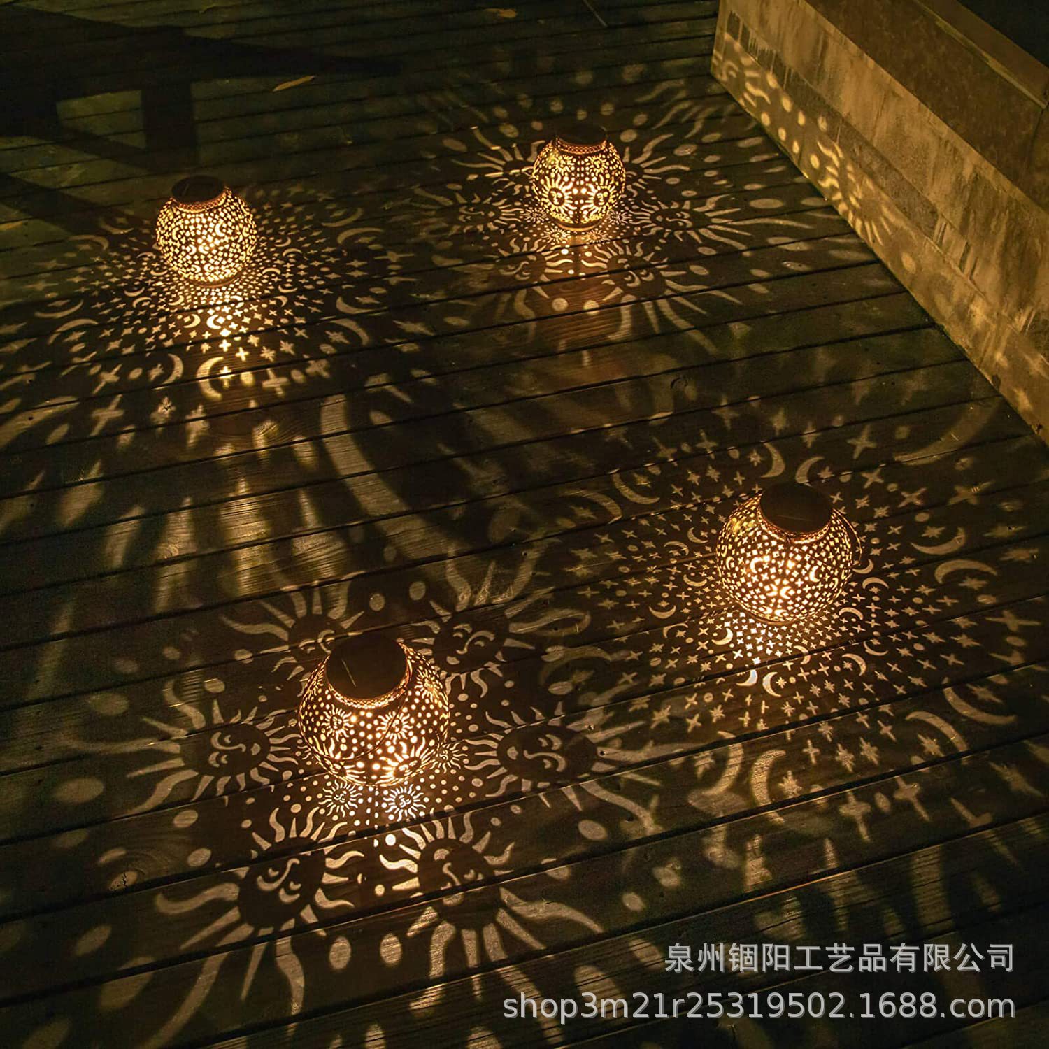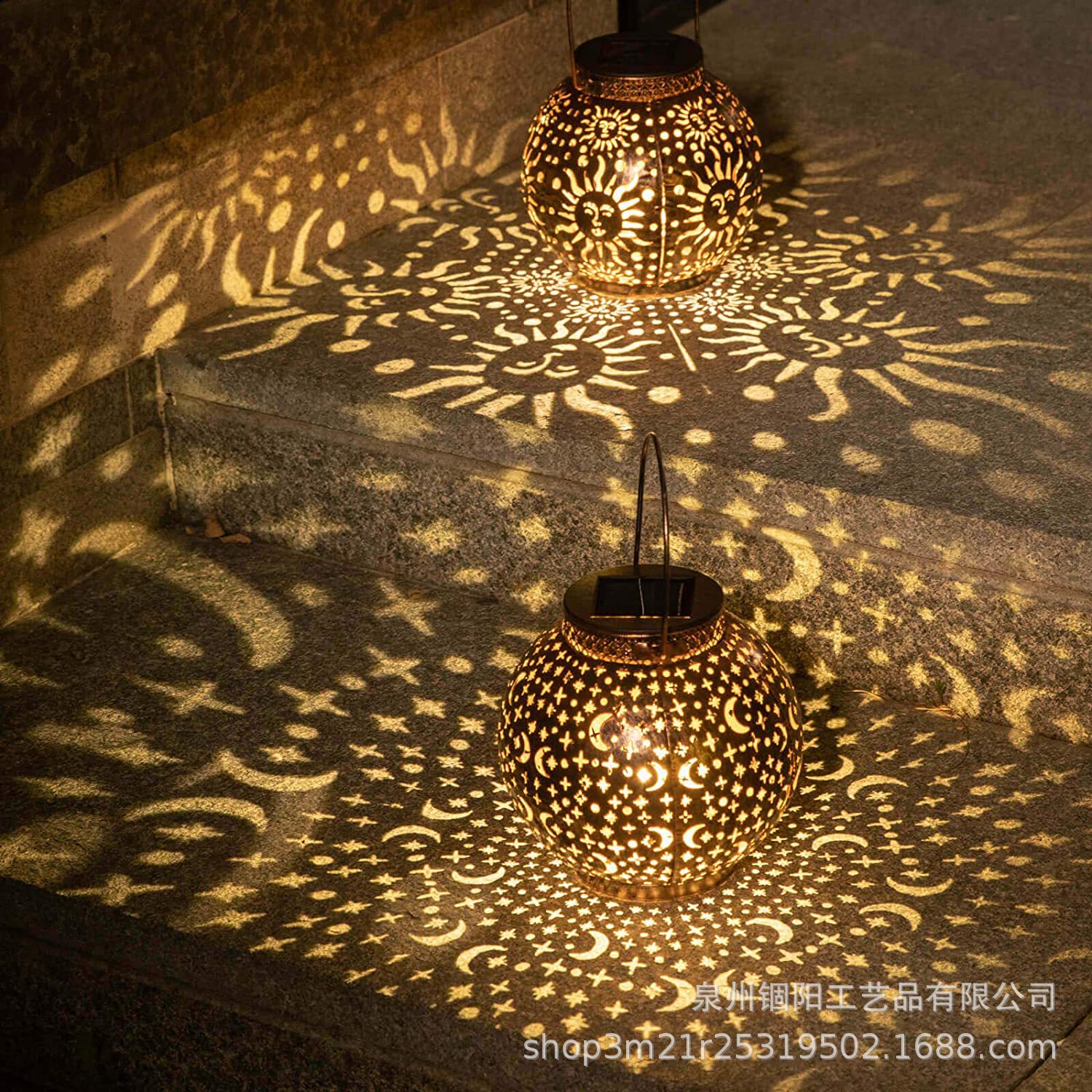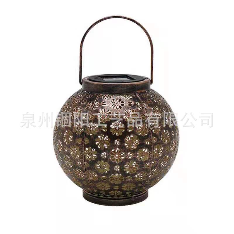 跨境热销太阳能灯笼户外挂灯铁艺镂空投影灯太阳能庭院装饰灯