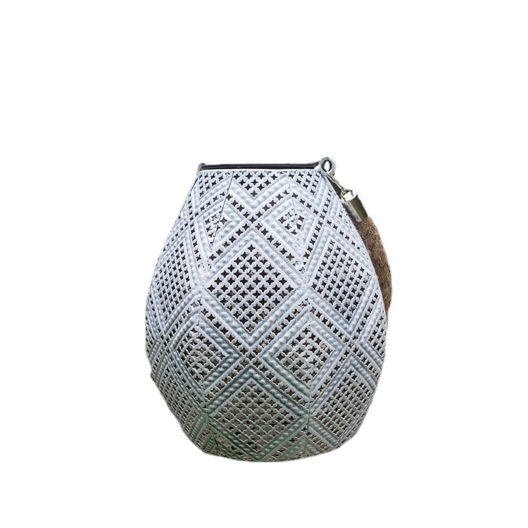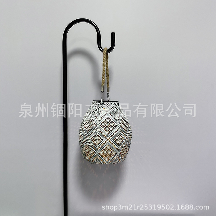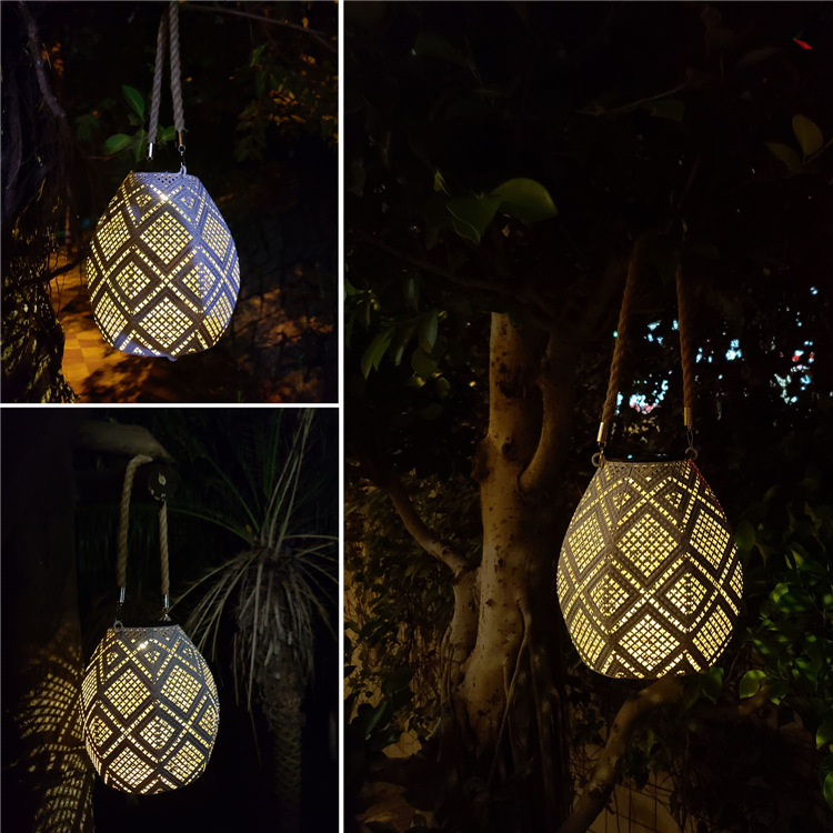 跨境创意太阳能铁艺镂空麻绳投影灯户外花园庭院景观装饰灯悬挂灯