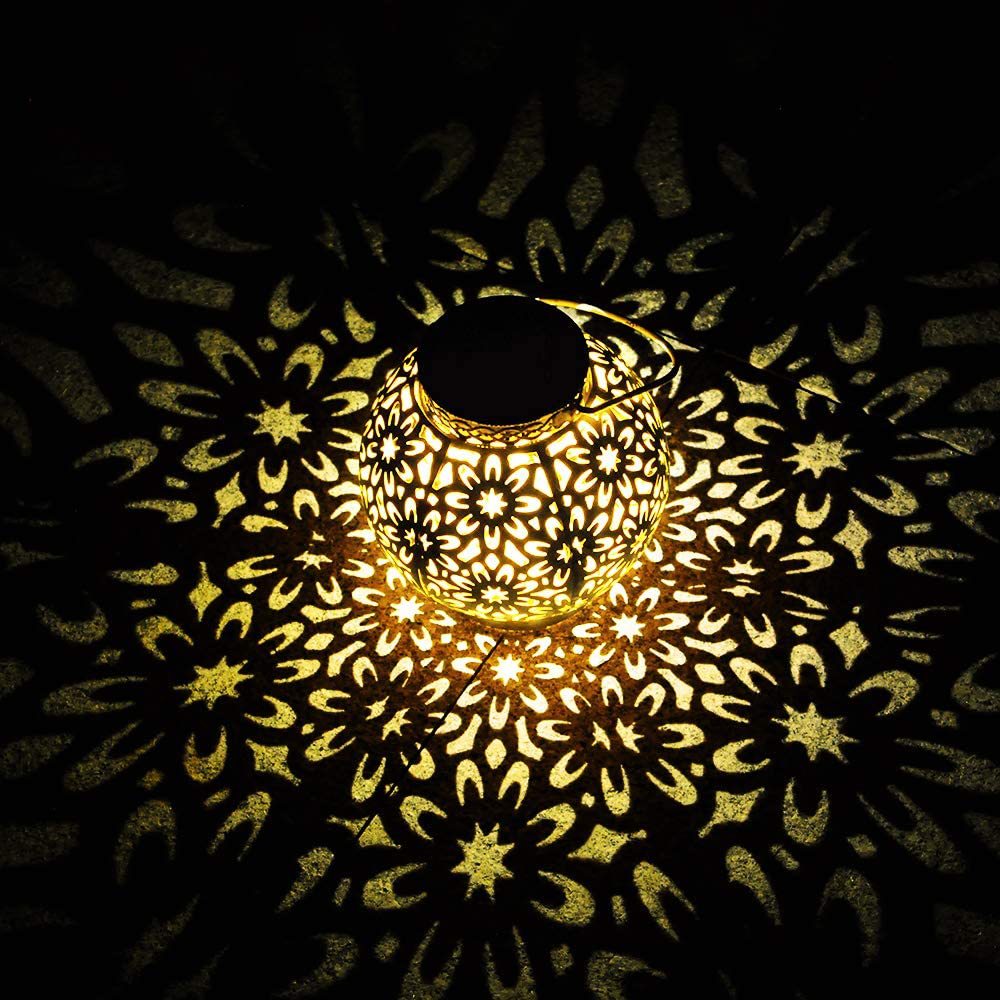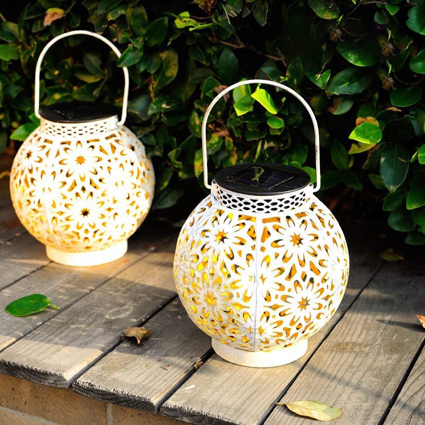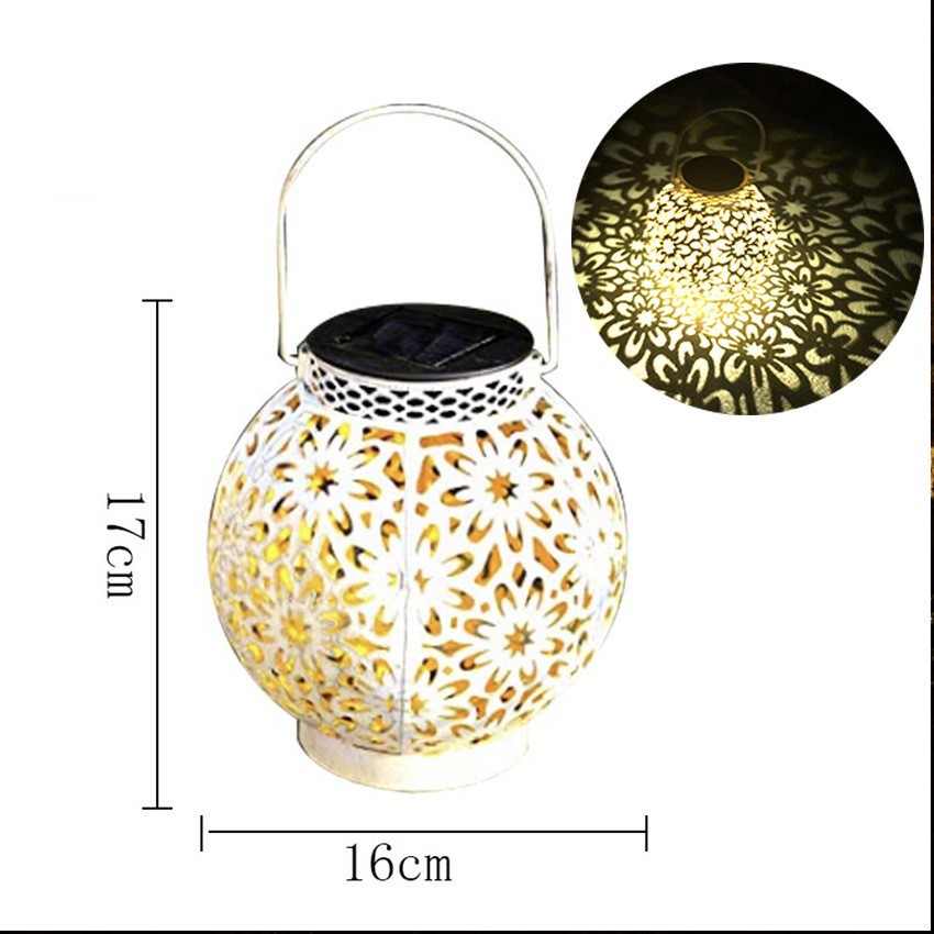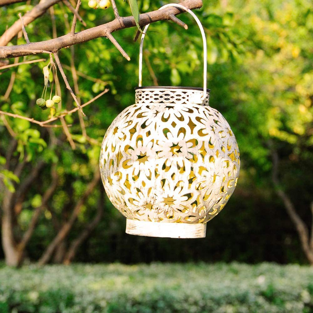 亚马逊户外创意太阳能灯笼花园庭院铁艺镂空装饰投影灯悬挂手提灯