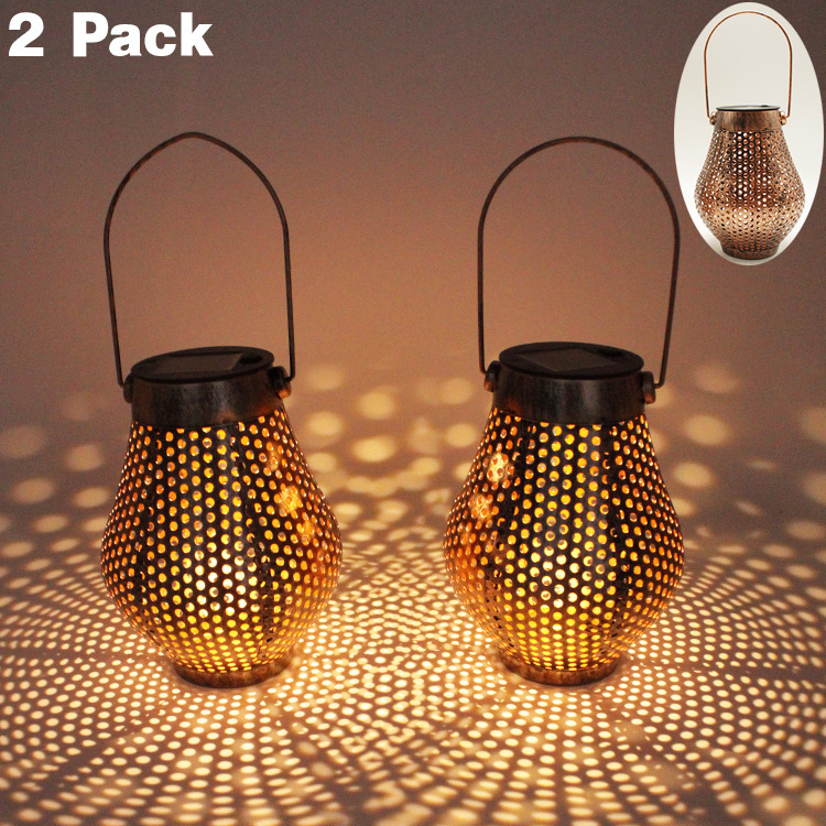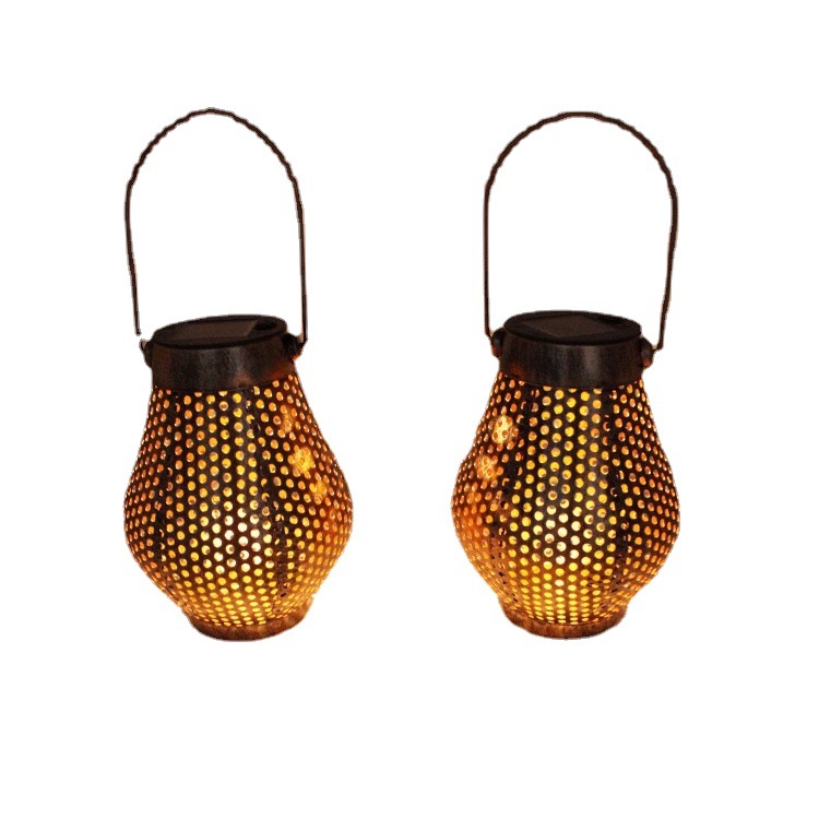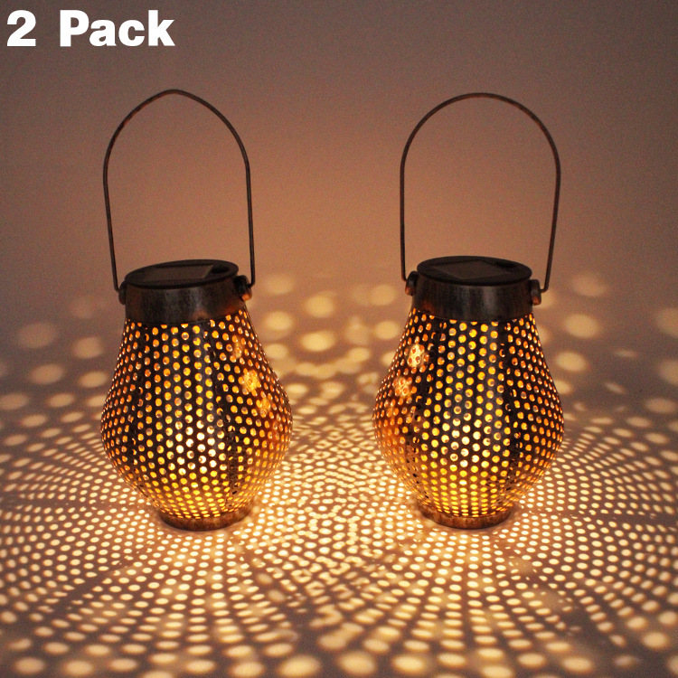 跨境太阳能金属投影灯刺点铁艺镂空悬挂灯草坪庭院装饰led景观灯