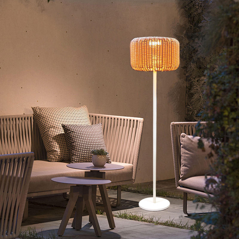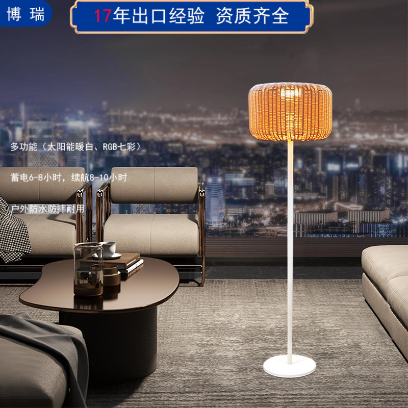 2023太阳能藤艺led落地灯户外藤编灯pe灯笼手编田园茶室简约客厅