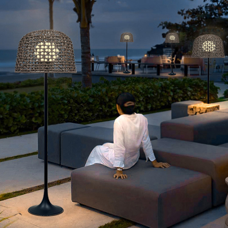工厂直销led灯藤艺落地灯手编复古防水暖光庭院灯PE餐厅客厅民宿