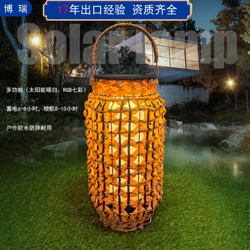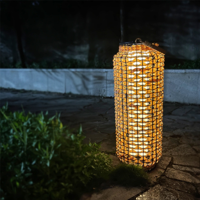 复古庭院落地灯手工藤编太阳能灯藤灯中日式简约餐厅民宿田园茶室