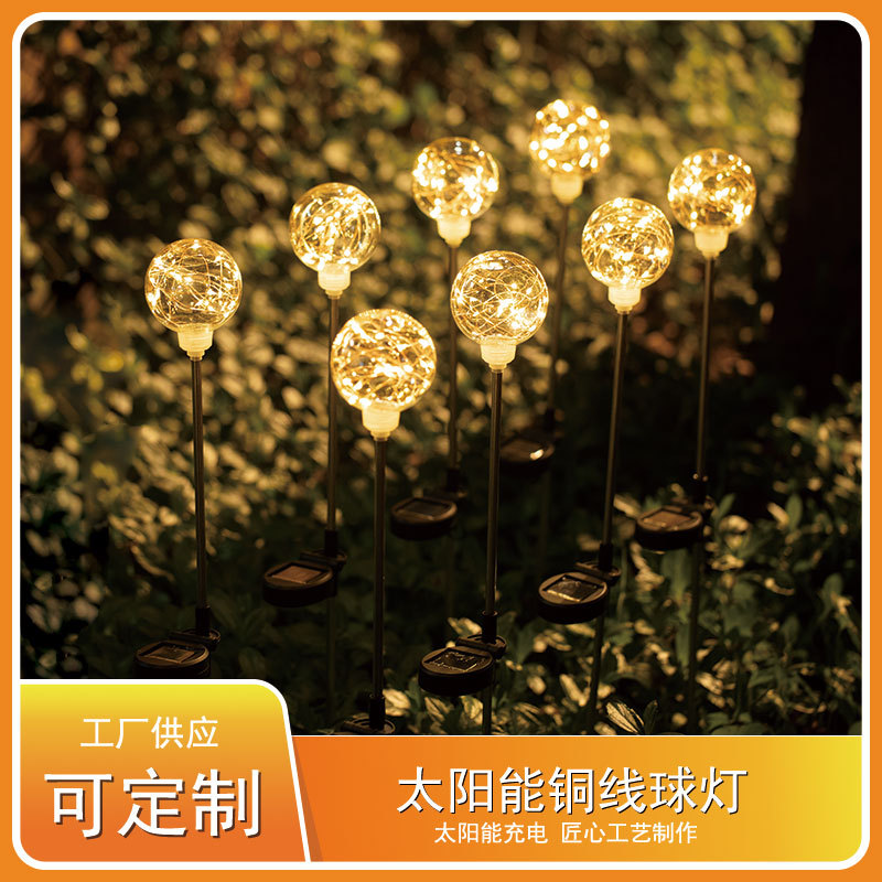 户外太阳能圆球芦苇灯花园庭院装饰插地灯发光铜线圆球灯草坪灯 补货中