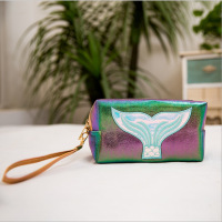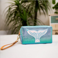 绣花鱼尾巴PU化妆包镭射包批发logo收纳包防水洗漱包 缺货