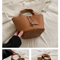 街头时尚简约百搭纯色手提水桶包热销爆款通勤女包 缺货