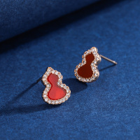 跨境爆款葫芦耳钉女耳环时尚国潮18K玫瑰金红玉髓中国风福禄耳饰 缺货
