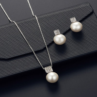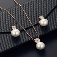 跨境欧美爆款四方镶嵌珍珠项链耳钉简约新娘婚礼首饰套装女士批发 缺货