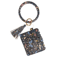 跨境爆款 豹纹PU皮革流苏手镯钥匙扣卡包证件包零钱包手拿包直销 缺货