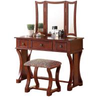 独特的现代卧室梳妆台套装,带凳子可折叠镜子抽屉樱桃色中密度纤维板贴面 1 件梳妆台家具