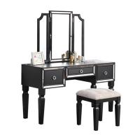 豪华雄伟经典黑色梳妆台套装带凳子 3 - 储物抽屉 1 件卧室家具套装三折镜