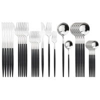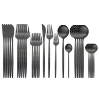 30pc跨境爆款 不锈钢餐具套装砂光金色勺子刀叉勺 五件套黑色 缺货