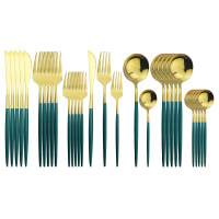 30p不锈钢餐具套装 镜面金色勺子刀叉勺 五件套绿金 缺货