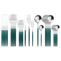 30p不锈钢餐具套装 镜面金色勺子刀叉勺 五件套绿银 缺货