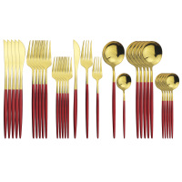 30p不锈钢餐具套装 镜面金色勺子刀叉勺 五件套红银 缺货