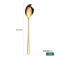 创意款304不锈钢餐具韩式勺叉子镀金幻彩调羹西餐勺爆款圆尾韩式勺-金色 缺货