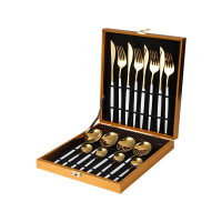 不锈钢葡萄牙镀金餐具套装金色木盒16件套餐具黑金 缺货