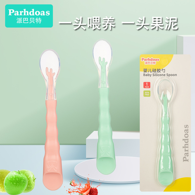 派巴贝特宝宝辅助喂养果泥勺双头硅胶喂养挖泥勺婴儿喂养勺73998