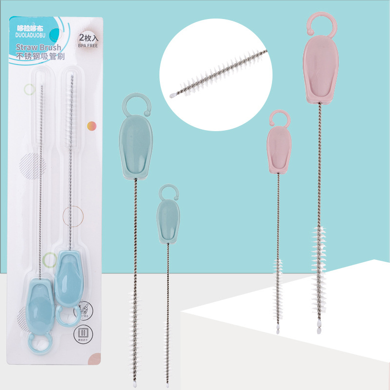 哆拉哆布宝宝不锈钢奶嘴刷家用宝宝奶瓶吸管刷清洁刷2件套 6258